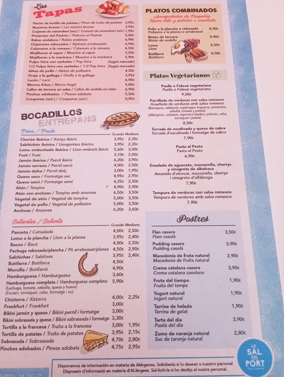 La Sal del Port Restaurant Menu